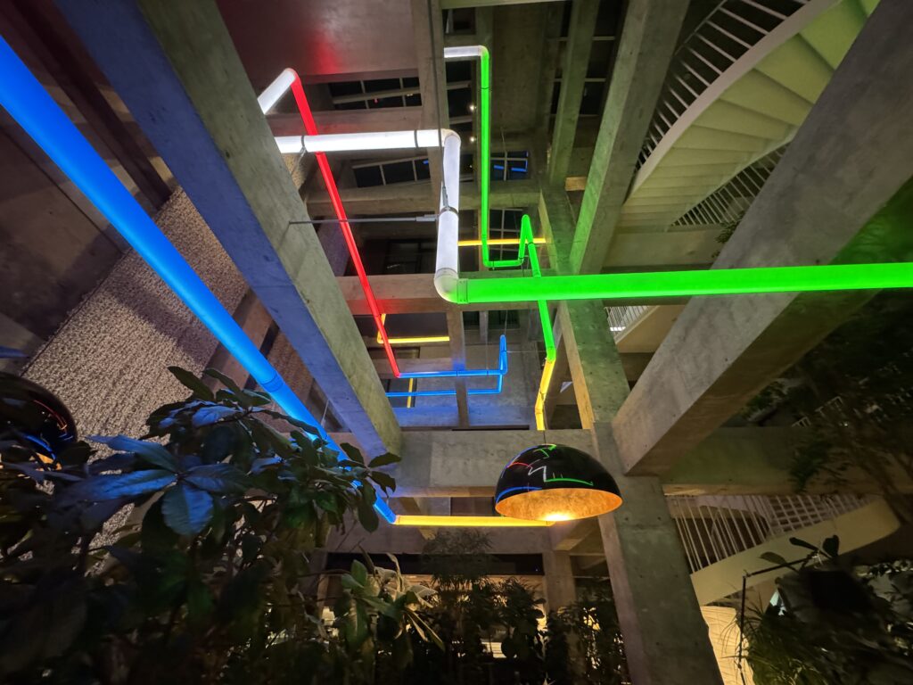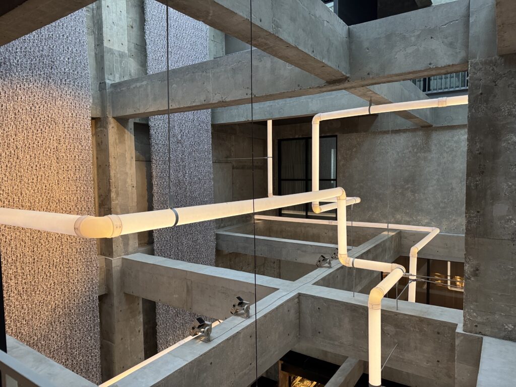 構造体・設備・アートの境界が意図的に曖昧にされ、