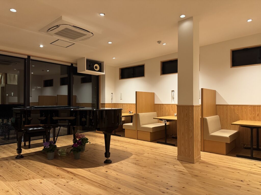 奥にはグランドピアノもあり、