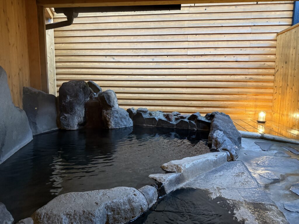 自然石でつくられた露天風呂で、